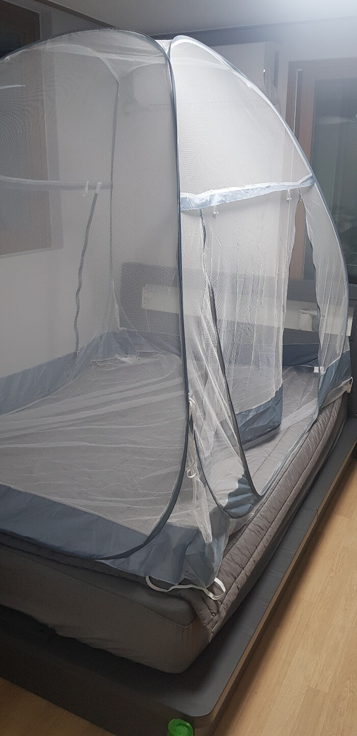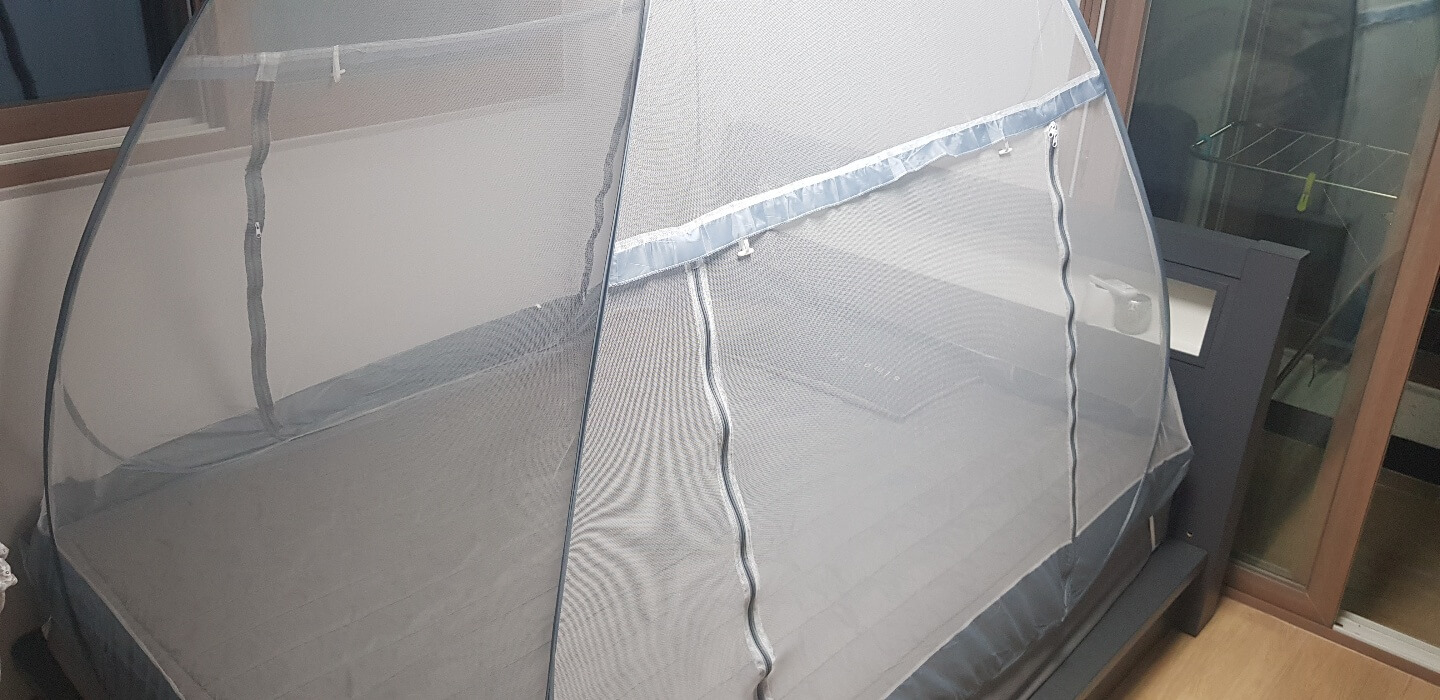 하지만.. 여름철마다 매일 이렇게 한다는 것은 아주 피곤하고 못할 짓입니다. 그래서 처음에는 모기 퇴치기도 생각해보았는데, 잠을 잘 때만 원천 차단하면 되는 것이 목적이었기 때문에 모기장 텐트를 구비해야겠다고 결정했는데요. 그래서 제가 이번에 구매해서 사용하고 있는 원터치 침대 모기장 텐트를 한번 소개해드려볼까 합니다. 집안에서 쓰기에 제격인 것 같고, 놀러를 자주 가시는 분들에게는 캠핑용 모기장 텐트로도 이용할 수 있겠더라구요. 그럼 한번 보실게요~