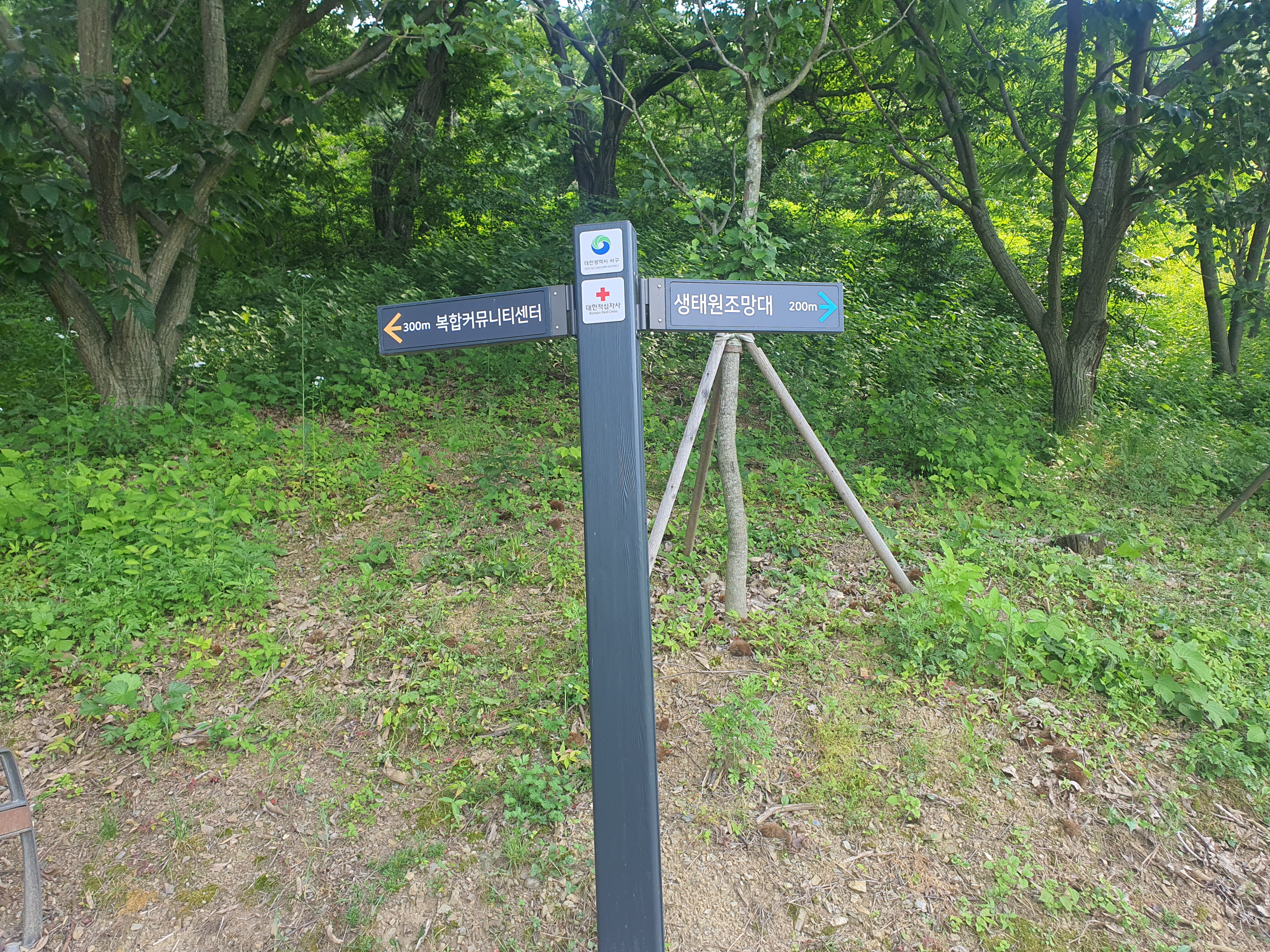 길목 저 앞에 건물 하나 보이시죠? 여기가 구절초와 반디의 숲 홍보관이 있었습니다. 참 그리고 화장실도 여기에서 이용할 수 있더라고요~